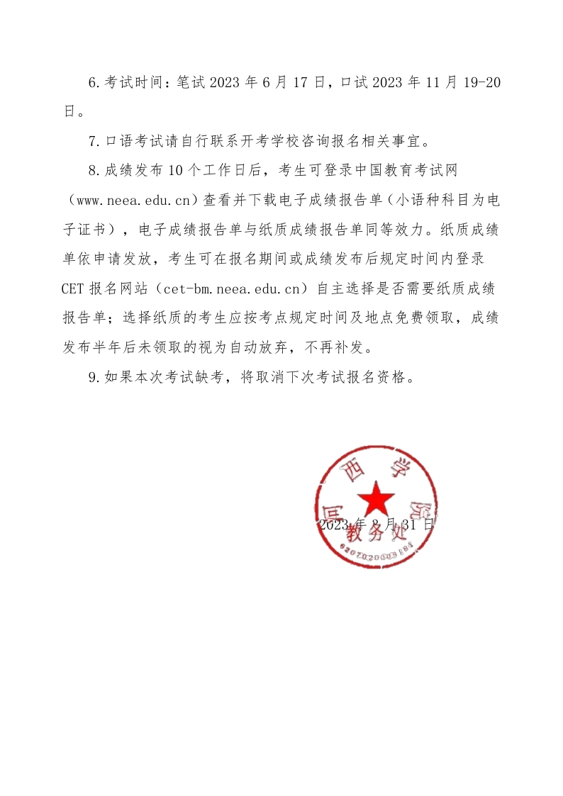上一条:关于做好2023-2024学年第2学期期末考试监考安排等工作的通知 下一条:关于2022年上半年全国大学英语四六级考试相关事项的通知