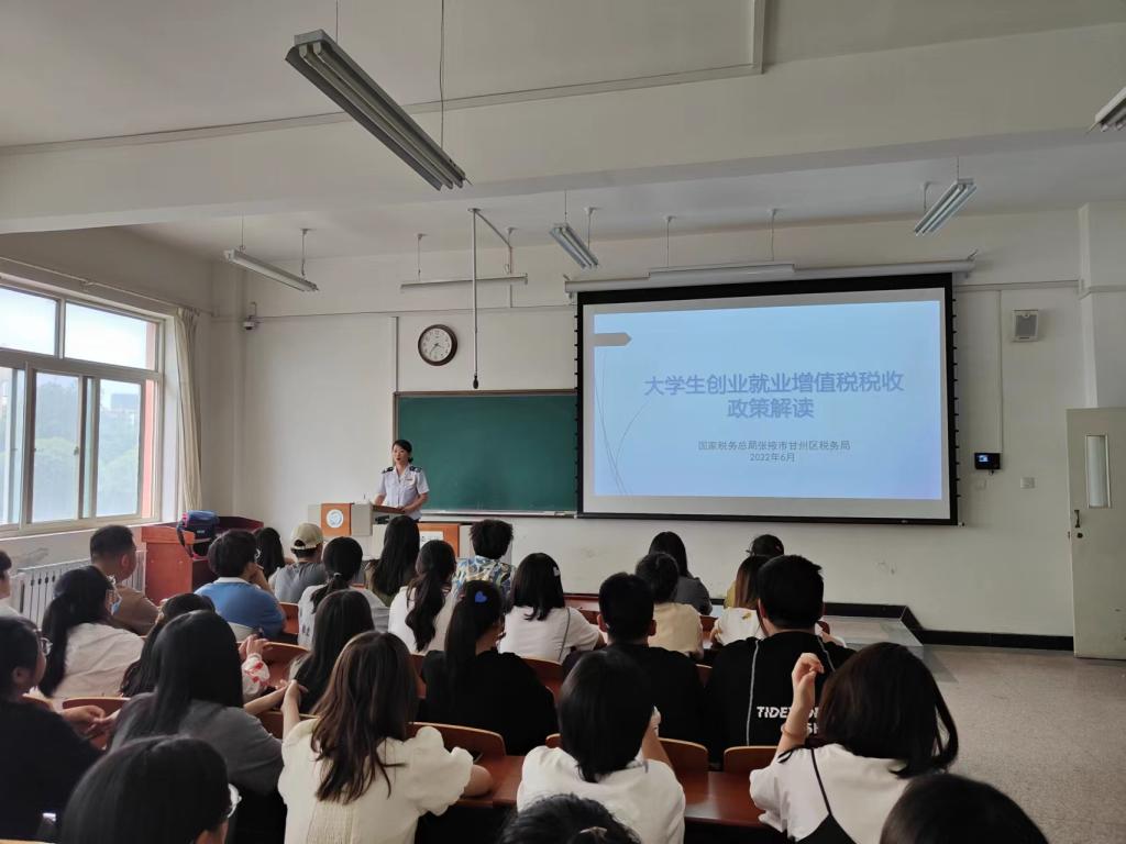 6月8日下午,为进一步落实校地合作、服务地方经济社会发展的务实举措,伟德国际victor1946和甘州区税务局、甘州区工商联开展支持老员工创业税费服务系列活动,甘州区税务局、甘州区工商业联合会负责人、伟德国际victor1946师生100多人参加活动。
