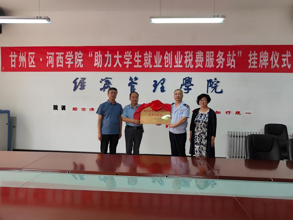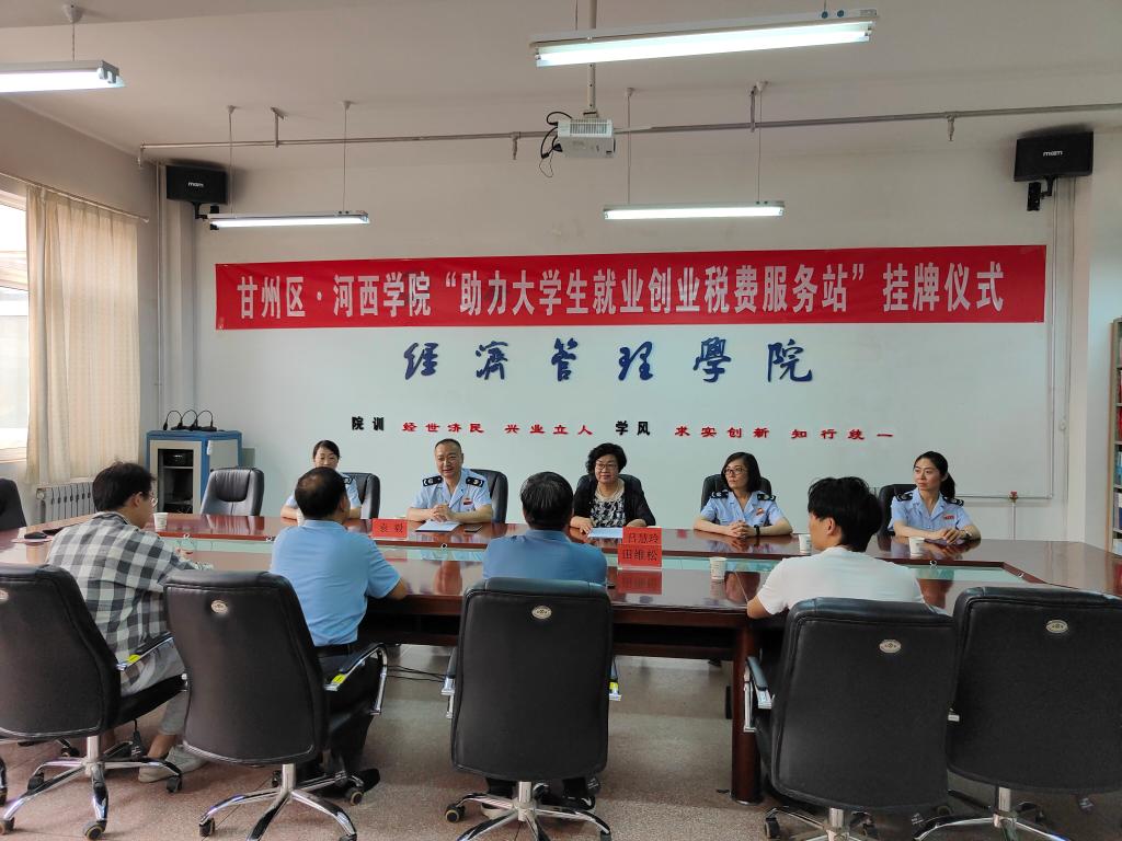 座谈会中,甘州区税务局、甘州区工商业联合会、公司领导进行了深入交流,介绍了各项新的组合式税费支持政策,对下一步深度开展校地合作达成了意向,并为“助力老员工就业创业税费服务站”揭牌。
