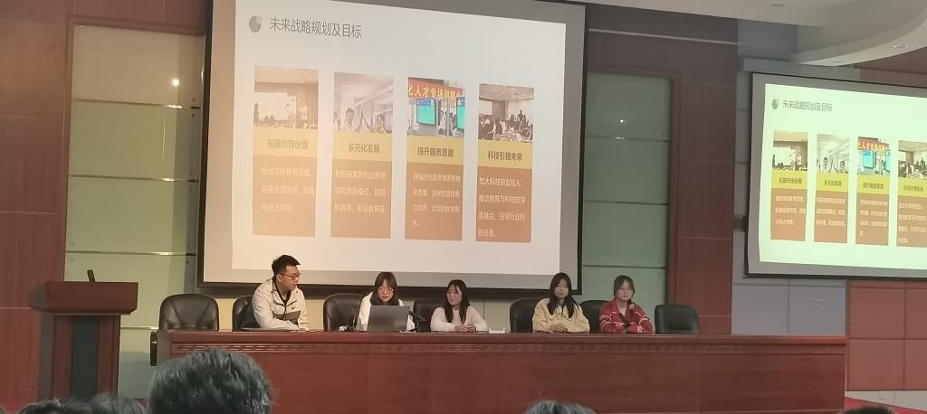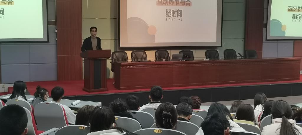 首场宣讲会以游学团队代表通过现身说法讲故事的形式,浅尝辄止地介绍了江苏省各地和上海市的风土人情、城市节奏以及美食、美景,重点谈了游学团队对走访的上海茵赫实业、上海如家酒店和上海文启优思等3家企业的认知和感受,对企业的情况简介、应聘要求、实习薪资、晋升渠道、绿色通道、食宿等方面进行了讲解和视频宣传,同时现场连线上海如家在岗实习的2024届毕业生王悠可同学,现身说法听其感悟,思其所言,激发了同学们对长三角优质企业的向往和求职兴趣,达到了此次求职预热活动预期的效果。现场还重点解答了同学们提出的较为关心的问题,并宣布了下场活动的目标企业,鼓励同学们提前了解,力争实现宣讲过程中的信息对称和同步共鸣。