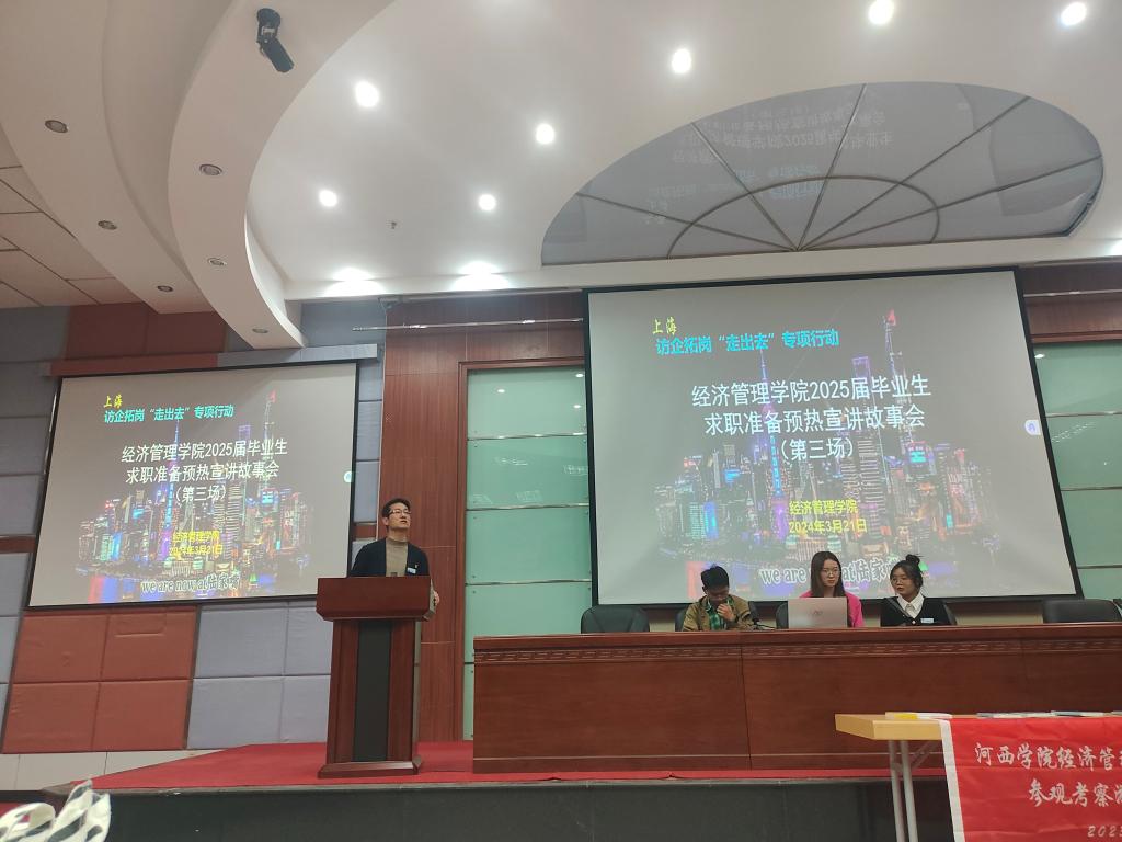为了认真贯彻落实党中央、国务院关于高校毕业生就业工作的决策部署及全省2024届高校毕业生就业工作第四次视频调度会议精神,全面贯彻落实伟德体育官方网站第四次党代会精神,千方百计开拓更多就业岗位和机会,促进毕业生充分高质量就业,3月21日,公司在逸夫图书馆二楼报告厅举办了第三场“2025届毕业生求职准备预热宣讲故事会”。公司员工工作办公室工作人员、访企拓岗游学团队12名员工干部代表、2021级全体同学以及2022级部分同学参加了此次宣讲活动。